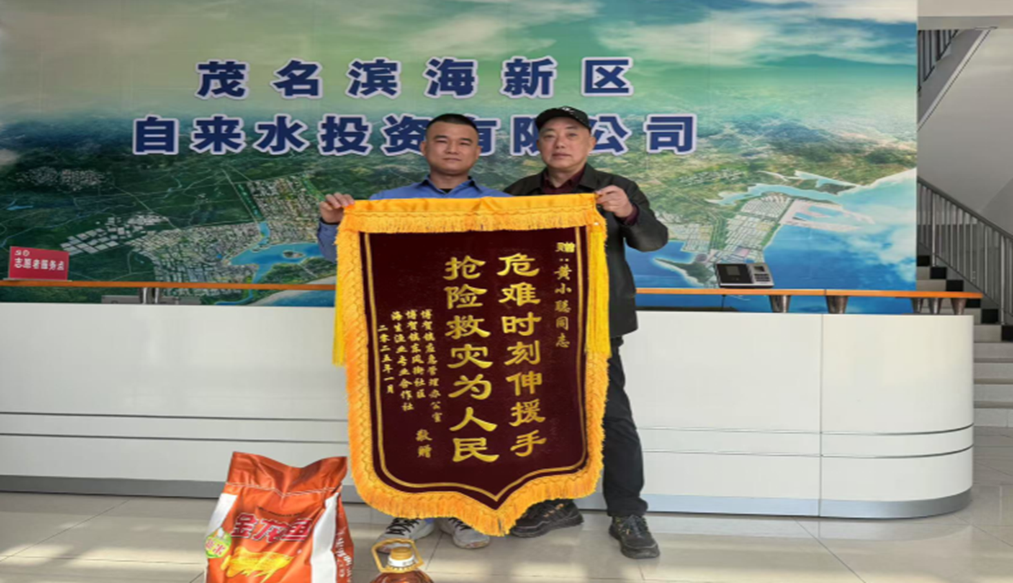 次日,廠老板特地到水投公司,送去一面“危難時刻伸援手,搶險救災為人民”錦旗表示感謝。黃小聰只是淡淡地回應:“不用謝,我是軍人,是黨員,也是茂名濱海發展集團水投公司員工,保護國家和群眾的利益是我的使命。”