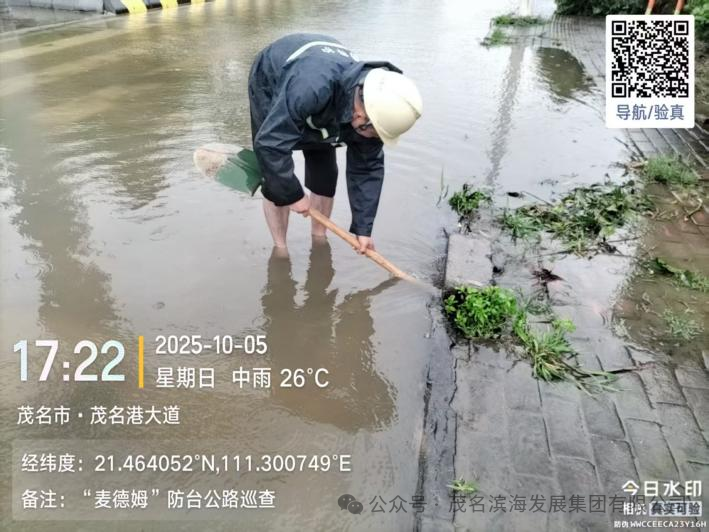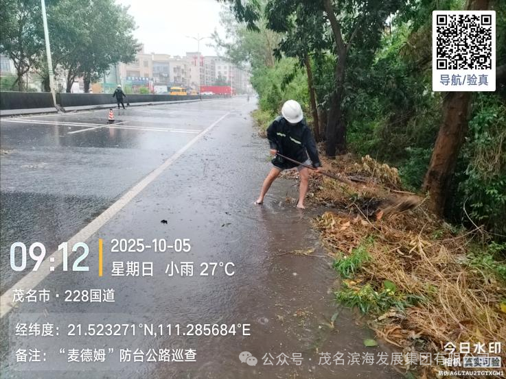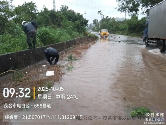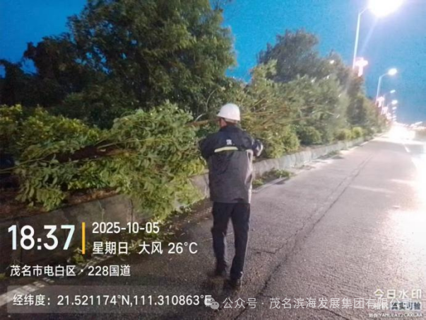 與此同時(shí),養(yǎng)護(hù)中心搶險(xiǎn)隊(duì)優(yōu)化力量配置,采取“兵分兩路”工作模式,對(duì)茂名港大道、S291省道、轄區(qū)國(guó)道及X848縣道等展開全域巡查,及時(shí)發(fā)現(xiàn)并疏通積水點(diǎn),協(xié)同清理國(guó)道沿線倒伏樹木,快速消除多處道路安全隱患,保障了道路基礎(chǔ)通行條件。