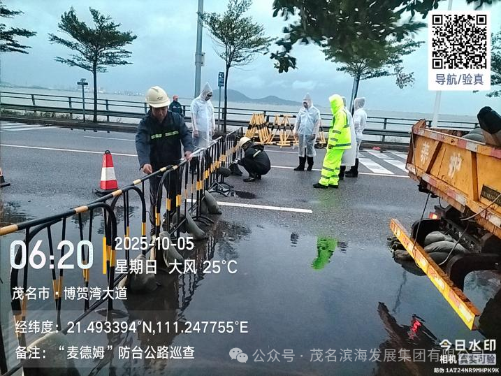 臺(tái)風(fēng)影響尚未全面顯現(xiàn),防御工作已率先展開。10月5日凌晨5時(shí)33分,養(yǎng)護(hù)中心搶險(xiǎn)隊(duì)已按濱海新區(qū)要求冒雨集結(jié)為封閉博賀灣大橋做準(zhǔn)備。歷經(jīng)1小時(shí)17分鐘的緊張作業(yè),當(dāng)日6時(shí)50分順利完成博賀灣大橋封閉任務(wù),有效規(guī)避了臺(tái)風(fēng)期間橋面通行風(fēng)險(xiǎn),為后續(xù)搶險(xiǎn)救災(zāi)工作爭(zhēng)取了關(guān)鍵時(shí)間窗口。